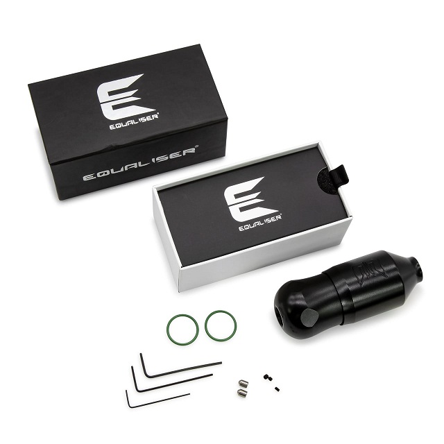 The powerful Drop Pen by Equaliser fits uncompromisingly into the range of tattoo pens. Due to the short design and the wide, ergonomic handle the Drop Pen fits perfectly in the hand. Thanks to its weight of 180 grams, it has a reduced rear weight and is therefore perfectly balanced.