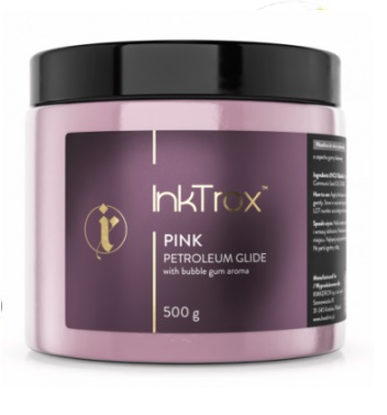 Благодарение на вискозната си консистенция, козметичният вазелин InkTrox е чудесен за подготовка на работното място на татуиста непосредствено преди извършване на процедурата. Улеснява закрепването на чашките с мастило към работното място, така че да не се движат или разливат. Допълнително предимство на този козметичен вазелин е ароматът му на дъвка и привличащият вниманието розов цвят. Уникалната формула се откроява от другите продукти. Определено всеки клиент на студио за татуировки ще му обърне внимание.