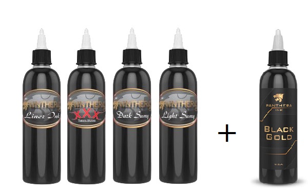 Категории » БОИ » Reach Approved Tattoo Ink » PANTHERA Tattoo Ink Panthera Ink Set + Black Gold - 5 x 150ml