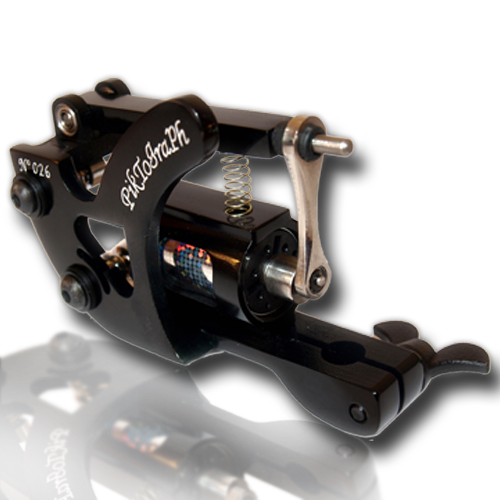 Piktograph rotary machine We are proud to present new rotary machine - Piktograph. Designed with a view to the most demanding tattoo artists, using the best quality of materials and care for details! A modern design of piktograph makes that it is an advanced tool in the hands of each tattoo artist ! Frame of the machine, was constructed with a single piece of aluminium air workpiece thermally and blanks, whose sustainability ensures its long non-failure use. The machine is supported by the engine known confederation companies "maxon motor" whose components are used in the most demanding retaining. Method of implementation causes that machinery works practically soundlessly, even at the highest returns. It is also perfectly hushed, and does not arise vibes. Technical specification: Aviable colors: Black & Red Voltage: 0-14V Connection: clipcord Engine 4,5 watt made in Switzerland Weight: ~ 96g Quantity of impacts: 0-8000/min | 0-130/sek